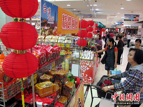 6月3日,“台湾食品节2010”在香港吉之岛百货及超市开幕。为期14天的美食展汇集台湾数百项优质食品,包括美味小吃、干果蔬菜、酒类饮品、香米面食等琳琅满目。中新社发 洪少葵 摄
