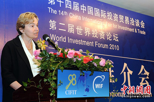 6月3日,“联合国贸发会议第二届世界投资论坛”与“第十四届中国投资贸易洽谈会”推介会假香港港丽酒店举行。据联合国贸发会议官员介绍(如图),世界投资论坛是第一次在中国举行,将邀请有关国家领导人、部长级官员以及来自世界各国的企业高管人士出席。出席当日推介会的厦门市市长刘赐贵说,“投洽会”将与“世界投资论坛”于今年9月初在厦门同期举行,届时论坛“全球投资峰会”、“部长级圆桌会议”等活动将与投洽会60多项主题活动有分有交叉进行。中新社发 郑祚声 摄