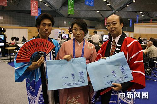 十一月十三日,本届新加坡APEC工商领袖峰会刚刚启幕,万众瞩目的APEC领导人峰会高潮尚未来临,但下届举办地的日本横滨相关人士已急不及待在会场内穿梭推介。摄影:郑祚声
