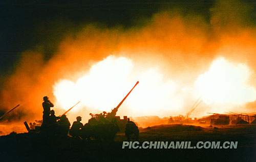 滇中某综合训练场,夜幕低垂,正在地面进行夜间训练的成都军区驻滇某高炮旅突然接到命令:熄灭所有照明灯具,立即进入等级战备,对突袭的“敌机”实施打击。随着刺耳的警报声划破夜空,指挥员立即下达命令:“打开新型火控系统搜捕目标!”,“目标捕住!”,“压弹,打开电击发。长点射,放!”……
