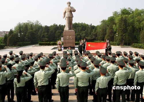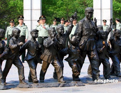 5月21日,解放军驻沈阳总参通信工程设计研究所官兵,到抚顺市参观雷锋纪念馆,在雷锋塑像前重温军人誓词,以保持部队高昂士气。这支有着老传统的部队,始终坚持部队安全发展理念,是全军师级单位唯一被评为全国社会治安综合治理先进单位。中新社发 宋吉河 摄