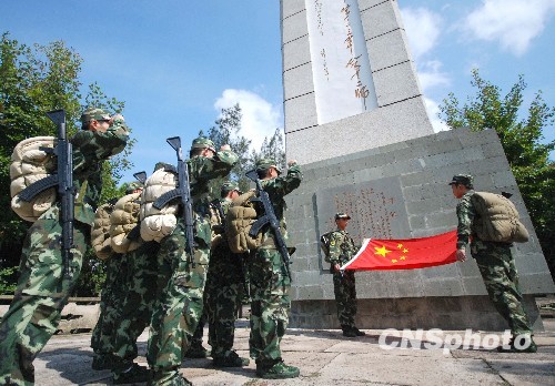 7月31日,浙江省台州边防支队温岭大队组织官兵来到中国工农红军第十三军二师诞生地——革命老区坞根,开展“弘扬八一精神,坚定理想信念”主题教育活动,迎接建军节。中新社发 郏策 摄