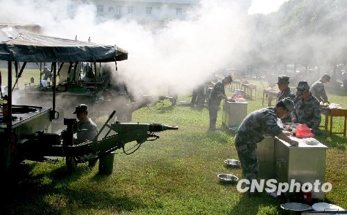 8月30日,驻桂空军某指挥所组织所属部队开展“炊事员大比武”,来自通信、警卫、气象、雷达、导弹等不同专业技术兵种的11支代表队,紧紧围绕未来战场野战炊事保障需求,采用新型野战炊事车展开了一次技能大比拼。中新社发 韦君 摄