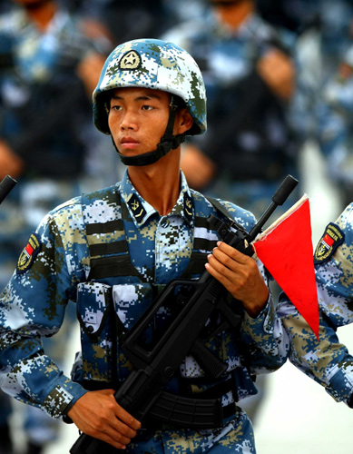 9月3日,解放军官兵在位于北京郊区的一处徒步方队阅兵村内训练。今年国庆节将举行新中国成立60周年国庆首都盛大阅兵仪式。中新社发 宋吉河 摄