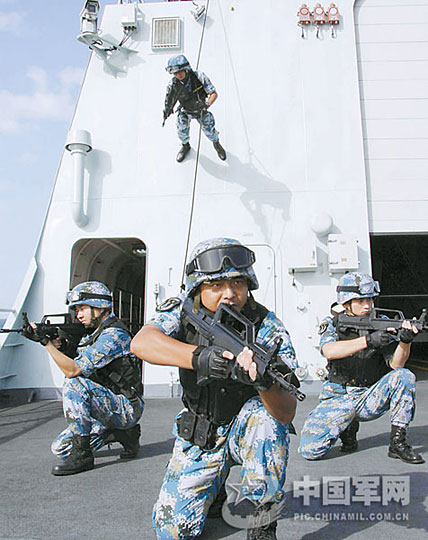 春节期间,正在亚丁湾、索马里海域执行护航任务的中国海军护航编队,组织特战分队开展海上目标快速判别、登临检查、警示驱离等训练。徐叶青 摄