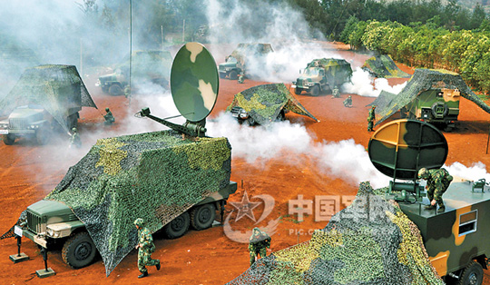近日,第二炮兵某部驻训场上空云雾缭绕,该部野战通信枢纽开设演练如期进行。随着指挥员一声令下,仅3分钟,所有的通信保障车辆就排成一条巨龙向深山挺进,迅速抵达预定地域展开作业。缪宏锦 摄