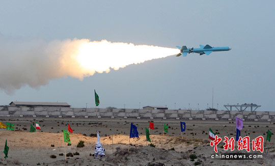 伊朗革命卫队25日在海上军事演习中试射了五枚导弹,导弹同时击中目标并将其完全摧毁。日前伊朗伊斯兰革命卫队在波斯湾及霍尔木斯海峡进行大规模的联合军事演习。