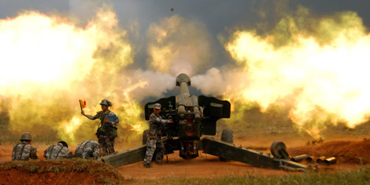 6月以来,成都军区驻滇某炮兵团把部队拉到滇西某高原地域,进行全员全装实战化训练与考核,全面锤炼部队高寒山地作战能力。图为演练中,该团火炮实施火力打击的情景。李玉现 摄