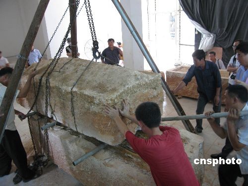 6月8日至9日,来自北京、陕西、湖北、广西等地的考古界和文物界的专家学者们,联合对广西上思县十万大山腹地2008年10月出土的一口重逾数吨的古巨棺进行保护性开发。预计在6月9日下午,这口由石灰石、粗砂、糯米等材料混合制成的“三合土”密封棺椁将顺利开棺。图为6月9日上午,考古工作者在现场开展古棺开掘工作情景。中新社发 杨强 摄