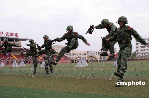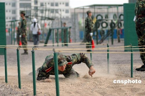 6月13日,山东聊城大学的441名国防生在校园综合训练场表演军体拳、进攻战术、渡海登岛、心理素质拓展等综合素质军事技能,与济南军区签订依托培养国防生协议的山东大学、中国海洋大学、中国石油大学(华东)、山东理工大学、烟台大学的代表及聊城大学师生进行观摩。中新社发 张振祥 摄