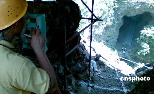6月24日,周口店猿人洞发掘正式开始。此次发掘是周口店遗址自1937年大规模发掘停止后,时隔72年后首次进行的抢救性清理发掘。此次发掘的部位为周口店遗址第一地点西剖面,它是周口店遗址的心脏,保存了遗址最完整的地层序列和丰富的科学信息,发掘面积为20平方米。图为考古工作人员在进行现场勘测,对左边的堆积物进行清理。中新社发 江晨 摄