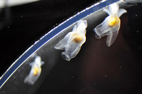 据负责照料这些浮游生物的饲养员介绍,这些“奇异”生灵大量出现在当地水域的原因,至今还不太了解。同时这位饲养员表示,自己跟同行正致力于保障这些次小生命,希望可以饲养出“但马的流水天使”。但目前这些浮游生物的生活情况并不是很好,由于对其生活习性的不了解,这位饲养员负责照顾的“小精灵”中已出现了大量的死亡现象。(陈宗楠)