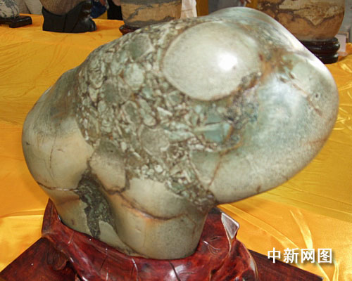 中新网宜宾7月7日电(邱萍)7日,在四川宜宾县第二届奇石展会场,数百名观众围着一枚形似青蛙的石头称奇赞叹。晶莹剔透的石头上,长出两个圆鼓鼓的眼睛,似一只青蛙蹲在地上,人们观后无不惊叹大自然的鬼斧神工。