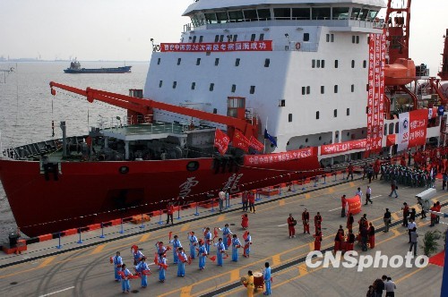 中国极地科考船“雪龙”号10月11日首次携带自备的大载重吨位直升机,从上海浦东外高桥中国极地考察国内基地出发,开始了中国第二十六次南极考察的行程。三位台湾科研人员首次参与中国南极考察项目。中新社发 陆从兵 摄