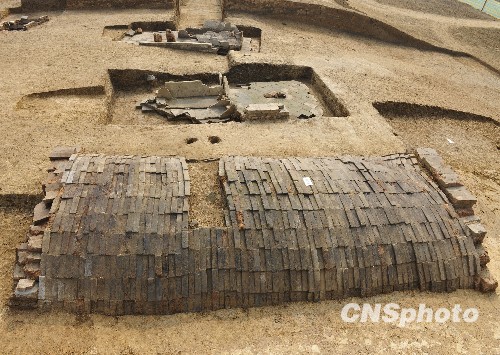 12月1日,从成都市双流县文物管理所获悉,一处面积约5000平方米的大规模汉代墓葬群在成都双流机场新航站区被发现。考古专家在此发现了一椁双棺,其中出土的青铜器上都镶有金箔,棺木的花瓣形泡钉上也有金箔。专家认为这是一座成都平原少见的西汉大型土坑木椁墓,其规模仅次于曾在绵阳双包山发现的西汉时期诸侯王木椁墓,应为夫妻合葬墓,墓主人是当时有一定社会地位的贵族。同时,与这座墓葬相邻的多座墓葬年代也在西汉时期,应为家族墓葬。图为大规模汉代墓葬群发掘现场。中新社发 李国 摄