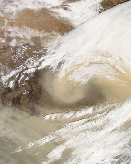 近日,中国北方接连遭遇两场沙尘暴袭击。22日,美国宇航局(NASA)公布了由卫星拍摄的沙尘暴照片。