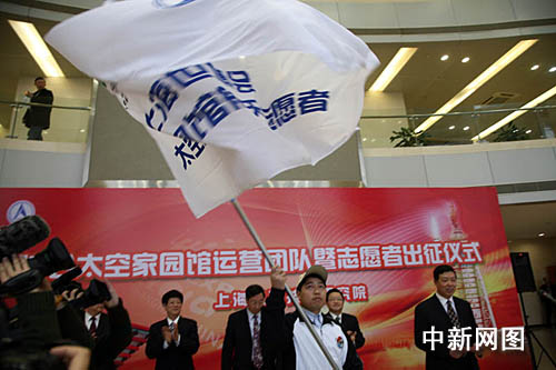 3月23日下午,上海世博“太空家园馆”运营管理团队和志愿者在中国航天科技集团公司上海航天技术研究院举行出征仪式,上海航天技术研究院近200名员工和志愿者庄严宣誓,将以航天精神服务世博、奉献世博,上海世博“太空家园馆”运营管理工作由此正式启动。