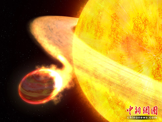 近日,科学家通过哈勃望远镜“宇宙起源摄谱仪(COS)”最新收集到的数据发现,迄今为止发现的银河系中温度最高的行星WASP-12b同时可能会是银河系中寿命最短的行星。目前,该行星正处于被其母星逐渐吞噬的过程中。