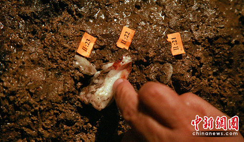 6月3日,由河北省文物部门组织的考古队继续对“水帘洞遗址”进行发掘整理,以探知距今约2至3万年的石家庄先民生活。据考古队长介绍,首个发掘的探方长50厘米、宽30厘米,探方呈烧土面含有很多黑色物质,是古人烧火留下的灰土。同时出土有各种兽类骨头化石以及含有石片、石盒等千件旧石器,这些都成为古人生火做饭的“餐具”。图为考古队员对文物遗存进行编号整理。中新社发 翟羽佳 摄