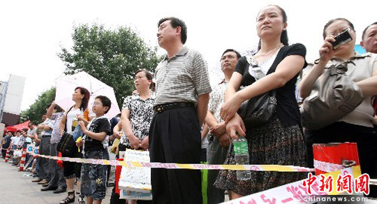 6月7日,河南郑州,参加高考学生的家长焦急的守候在考点警戒线外。当日,中国迎来第一考。中新社发 王中举 摄