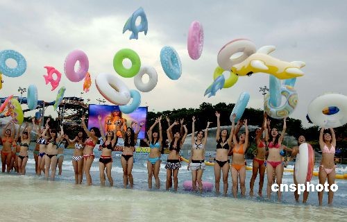6月17日,“2009长隆比基尼小姐大赛”在广州长隆旅游度假区启动。40名率先报名参赛选手被特别邀请到新闻发布会现场,展现活力与健康的魅力。中新社发 刘卫勇 摄