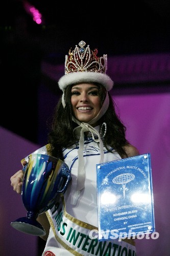 11月28日晚,第49届国际小姐世界大会全球总决赛在成都举行,来自全球66个国家和地区的国际小姐决战“美丽之巅”,通过民族服装秀、泳装秀、晚装秀、现场问答四个环节的比赛,最终墨西哥小姐Anagabriela Espinoza摘得桂冠。韩国小姐Seo Eun-mi、英国小姐Chloe-Beth Morgan分别亚军和季军。图为摘得桂冠的墨西哥小姐。中新社发 张浪 摄