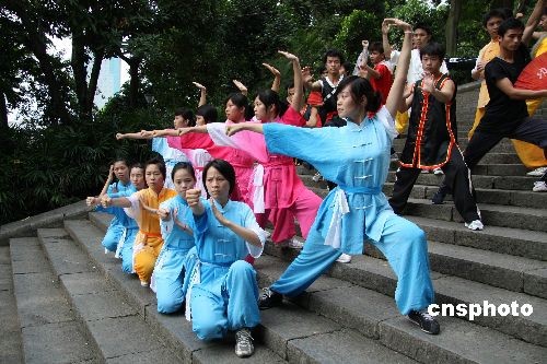 5月19日,广西体育高等专科学校一群学生在南宁市人民公园练习中华武术,为推广弘扬中华武术,该校成立了武术协会,参与者众。中新社发 曾德军 摄
