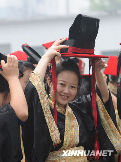 5月25日,安徽省艺术职业学院的100名学子穿上汉服,参加18岁成人礼。仪式分为拜礼、加冠、揖礼等五部分。