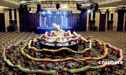 5月28日,中国传统佳节端午节,欢庆节日的一大亮点舞龙在广州新长隆酒店国际会展中心举行。全长350米的巨龙龙身,在200名壮汉的挥舞下活灵活现,最后在会展中心内组成气势磅礴的造型,令人叹为观止。中新社发 刘卫勇 摄