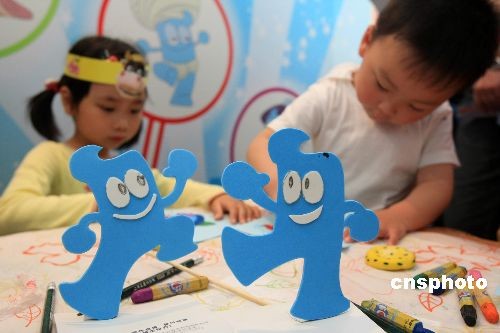 5月29日,在2009年中国福利会少年宫庆“六一”主题游园活动中,上海世博会吉祥物“海宝”颇受申城儿童的青睐,不少小朋友还亲手制作“小海宝”来迎接“六一”的到来。中新社发 汤彦俊 摄