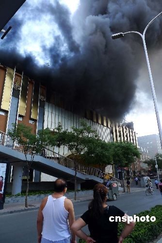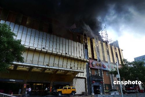 5月31日上午,位于北京两广路闹市区的一家酒店突发火灾,浓烟腾空而起,起火原因尚不明。中新社发 毛建军 摄