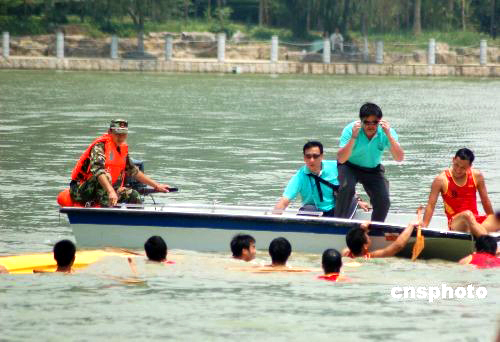 5月31日,为期两天的第六届南宁国际龙舟邀请赛进入第二天,当天上午的比赛中一本地龙舟抵达比赛终点后意外翻船,所幸救援人员迅速赶到,将落水队员救上救生艇。本次比赛共有来自越南、菲律宾、英国等8个国家和地区的58支龙舟队伍参加角逐,菲律宾成为最大赢家。 中新社发 刘万强 摄