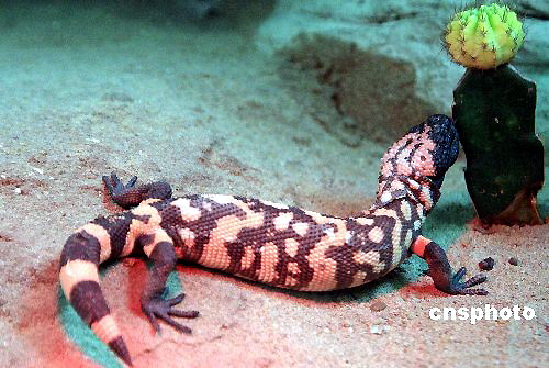 5月31日,4只美国希拉巨蜥幼崽亮相上海动物园,这是中国大陆首次引入的保护动物新物种。据介绍,希拉巨蜥唾液中含有新的多肽激素,可以影响胰岛素分泌,给科学家研究糖尿病新药带来灵感。 中新社发 潘索菲 摄