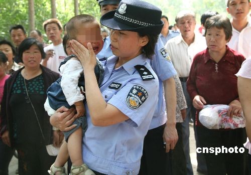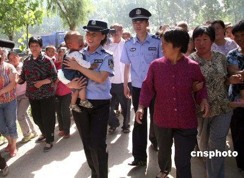 6月1日,山东菏泽市“5.18”抢夺、拐卖儿童案成功告破,李某等5名犯罪嫌疑人全部落网。据悉,2009年5月18日,许某刚满周岁的儿子跟姥姥在村头玩耍时被2名歹徒抢走,后又以4万元的价格出卖。菏泽市公安局牡丹分局刑警连续奋战13个昼夜,终将犯罪嫌疑人抓获,将幼儿平安解救出来,小伟伟重返父母怀抱。中新社发 刘心中 摄
