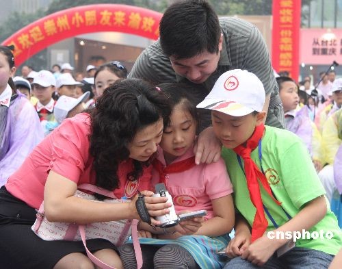 2009年6月1日,由重庆市民政局、市福彩中心主办的“让爱成行、情满天下”爱心家庭牵手震区儿童大型公益活动启动。61名来自四川崇州震区的儿童与重庆61个爱心家庭牵手结成对子,共同欢度“六一”儿童节。中新社发 贺终荣 摄