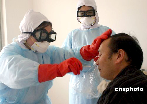 6月2日,为检验全县卫生系统在防控甲型H1N1流感方面的应急反应和应急处理能力,保障灾区群众生命健康,陕西宁强县卫生局组织县医院、县疾控中心等医疗卫生单位在县医院进行甲型H1N1流感应急演练。使甲型H1N1流感防控工作由单兵演练转变为多单位参与、系统内部协作阶段更贴进甲型H1N1流感防控实际需要。 中新社发 黎徳华 摄