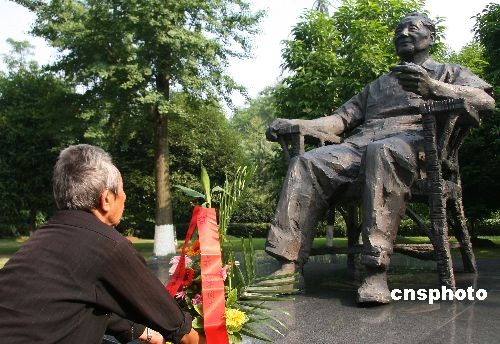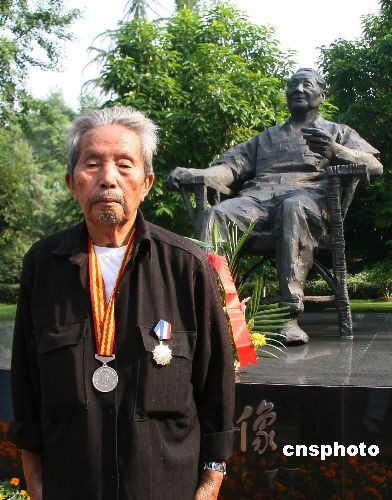 6月6日,在缅甸生活长达60多年的中国远征军老兵、广安籍88岁老人刘召回在四川广安邓小平纪念园邓小平铜像前献花。当日,刚从缅甸回国探亲的刘召回,为亲眼看一看祖国的繁荣富强,感谢邓小平的好政策,专门从四川省广安市岳池县裕民镇陶家沟村老家由亲人陪同来到邓小平纪念园缅怀邓小平同志的丰功伟绩。据了解,1942年3月,在抗日战争最为关键的时刻,10万中国远征军从畹町走出国门,抗日救国。战后有上千远征军留在了战场缅甸,开始了长达数十年的异乡生活。中新社发 杜修战 摄