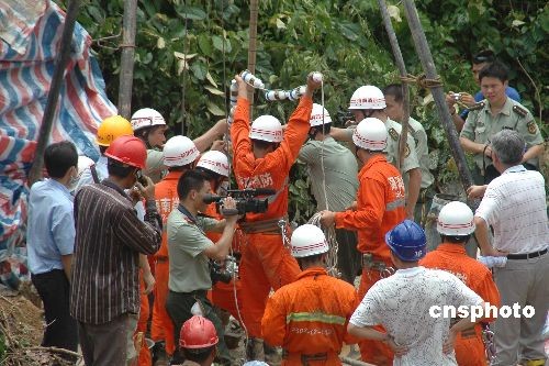 六月六日中午十二时十五分,三亚绕城高速公路塌方隧道救援工作取得突破,一个直径十三厘米管道从隧道上方打通到隧道内,打通了“生命通道”。据隧道内被困施工人员介绍,被困的八名施工人员全部安全。十二时四十分许,救援人员将水、食物等送到隧道内。
