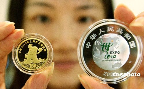 2009年6月10日,中国2010年上海世界博览会金银纪念币(第1组)运抵苏州,并将于6月11日起在该市姑苏金店正式对外销售。 中新社发 王建中 摄