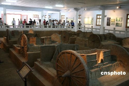 6月12日,河南安阳殷墟博物馆,伴随着6月13日中国第四个“文化遗产日”的即将来临,民众聚集世界文化遗产安阳殷墟观看殷代车马坑。殷代车马坑是华夏考古中发现最早的畜力车实物标本。中新社发 王中举 摄