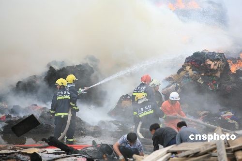 6月12日下午,北京北五环路外昌平区一旧货市场发生火灾。据北京市消防局新闻处介绍,着火点为昌平区马家地北京利通达晟再生资源回收市场,着火物为回收的废塑料、轮胎、木头等废旧物品,过火面积较大,但目前尚未有人员伤亡报告。火灾发生后,7个消防中队赶到现场扑救。消防部门表示,火灾原因和过火面积正在调查中。 中新社发 张京州 摄