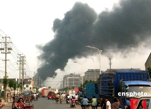 6月16日傍晚,扬州连运小区东大门对面民房发生一起火灾,现场3辆货车的电动车组装材料被烧毁,其中大部分是塑料制品。火势非常猛烈,蔓延至厨房、卧室等其他房间,并致隔壁的一户人家以及2楼全部受到牵连,被烧房间多间。14辆消防车70名官兵到现场抢险扑救,历经近5小时,未造成人员伤亡。中新社发 曹亚松 摄