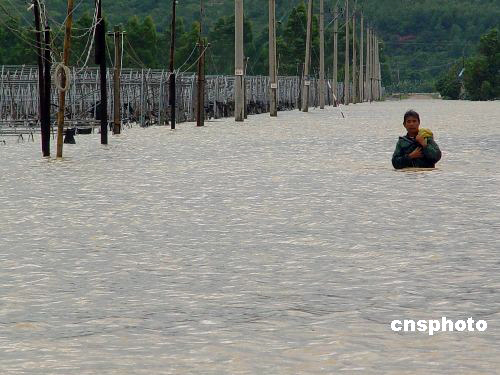 受热带风暴“莲花”影响,福建省诏安梅洲乡下起特大暴雨。据该县气象局测报, 从6月22日凌晨0点至早上8点,8小时降雨量达到273毫米。这场暴雨使梅洲乡遭受罕见水灾,1580多户民众家中进水,最高进水位达3米多高,上万民众受灾,近两千名民众安全转移。22日中午,雨水停后,水位已开始快速回落。中新社发 沈丽煌 摄