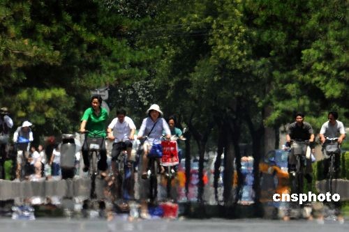 6月25日,北京街头热浪滚滚。当日,中国共有17省市(自治区)将会受到“热浪”不同程度的席卷。中央气象台发布今年首期高温中暑气象预报,并继续拉响高温橙色警报。中新社发 廖攀 摄