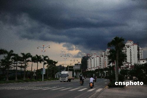 2009年6月25日,海南东部琼海市上空乌云翻滚。今年第四号热带风暴“浪卡”目前正在中沙群岛偏东方约350公里的南海东部海面上,中心附近最大风力8级,预计未来24小时内,“浪卡”中心以15公里左右的时速向西北方向移动,强度将有所加强。 中新社发 蒙钟德 摄