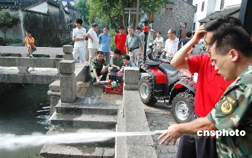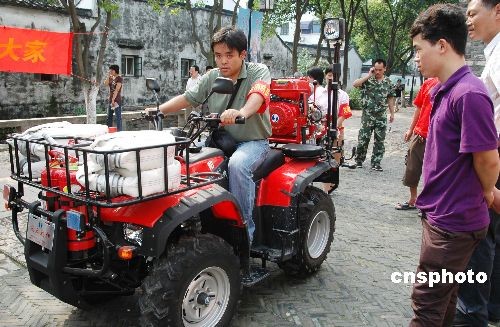 2009年7月1日,苏州市第一辆“风火战神”微型消防车开进了苏州平江路历史保护街区。该“风火战神”消防车配备有机动泵、橡皮管、消防服和其它各种消防工具。据介绍,该消防车是为了解决历史保护街区小巷内无法开进消防车而专门定购,今后它将担负起保护苏州古街的重任。 中新社发 苏民 摄