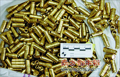 “制造子弹的四个人是五金厂的模具师,他们有制作的技术,只要有图纸,很容易就能造出来。”陈子攀介绍,嫌犯还从广西弄来黑色火药,装上去就可以射击,威力很大,“只比真子弹稍微差一点而已。”