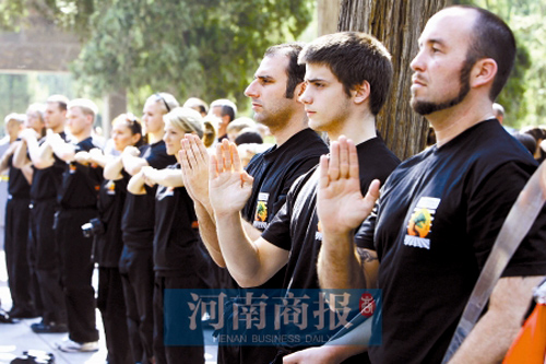 禅宗祖庭少林寺来“洋弟子”已经不是什么稀罕事。早在1997年,美国少林拳法就已经归宗认祖,并于2006年组织了河南历史上最大规模的一次朝拜——500人归山少林。