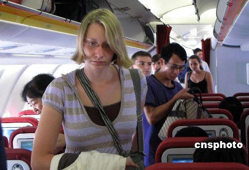 7月6日,外国乘客登上北京飞往新疆乌鲁木齐的飞机,当日,往来北京和乌鲁木齐的航班运营正常。中新社发 廖攀 摄