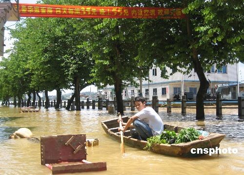 7月7日14时,备受关注的今年首个西江超警线洪峰安全流经广东封开江口水位站,洪峰水位接近5年一遇的20.15米,超警线3.15米,江口镇“水上居民”平安无事,受灾居民已得到妥善安置,社会治安平稳。中新社发 黄耀辉 摄